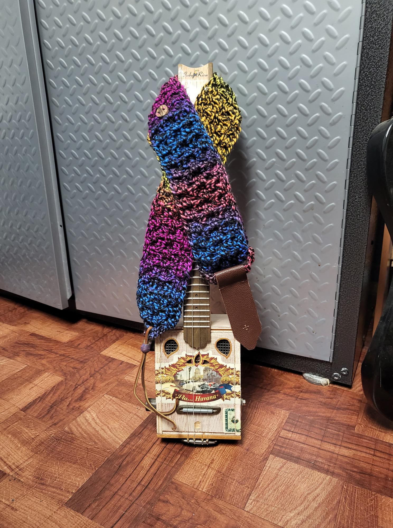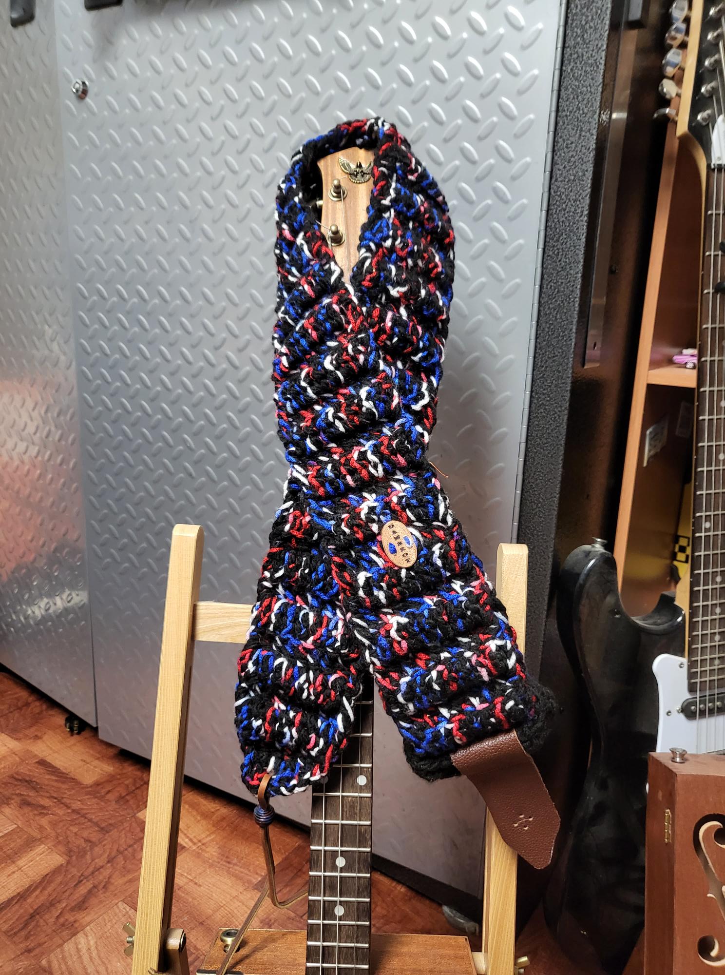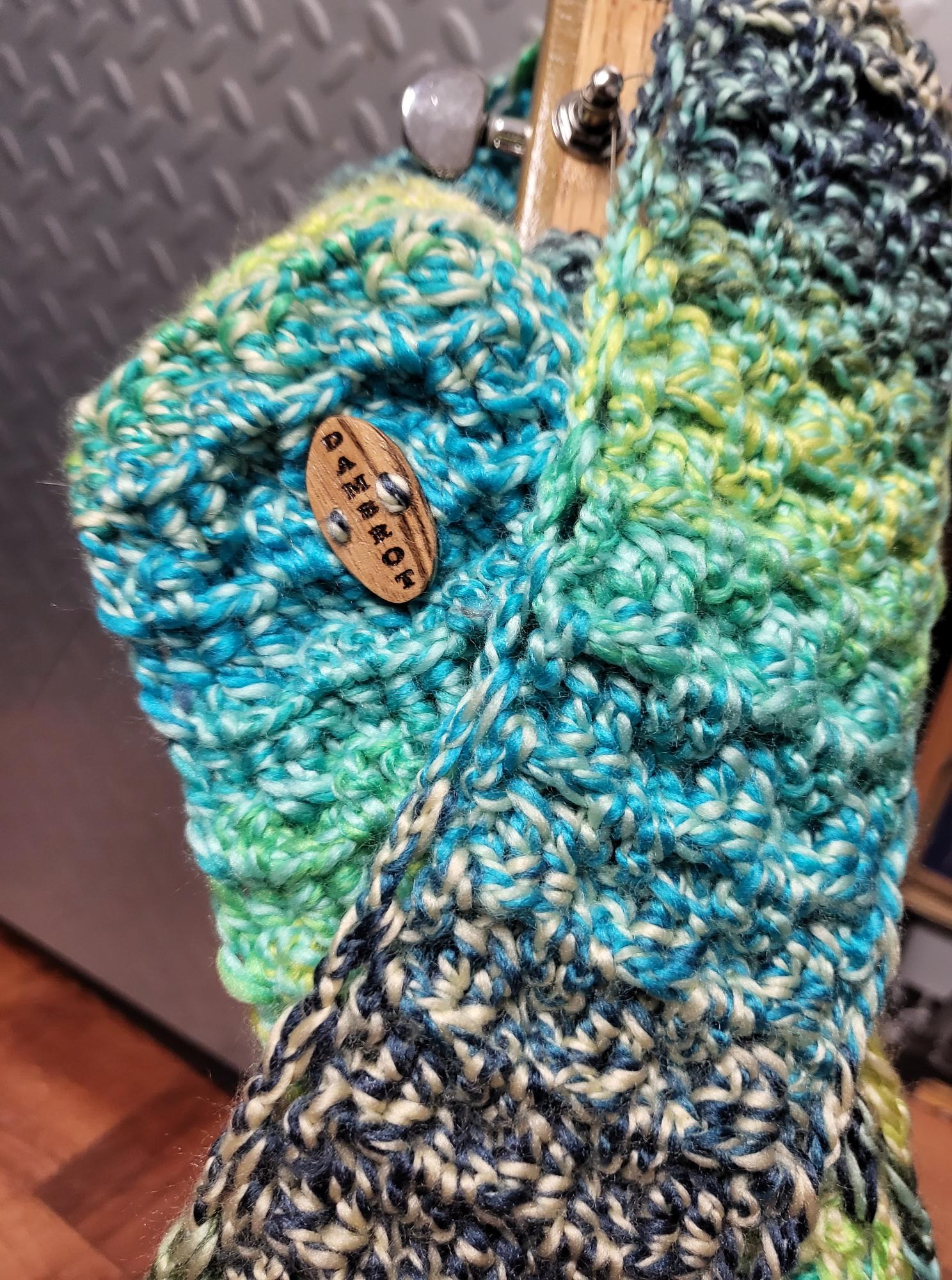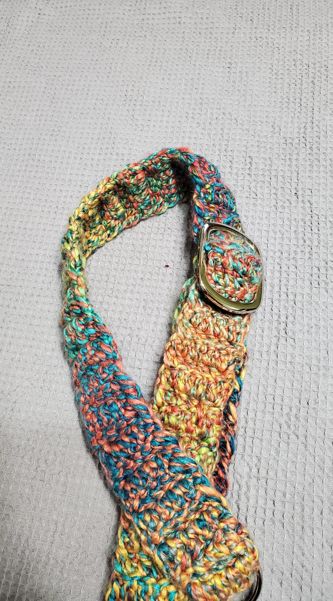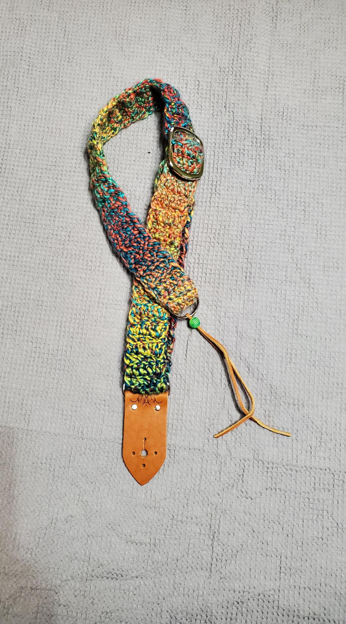All straps are hand crochet and adjustable. When requested wooden buttons are used instead of a metal buckles to adjust the length and can be personalized. I take custom orders, size, color, with leather ends or non metal parts. Contact Me to get one started.